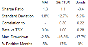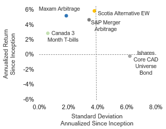 The information contained in this presentation is intended to provide you with information regarding Maxam Capital Management Ltd. and the funds it manages. Maxam Capital Management Ltd. is the manager for the Maxam Arbitrage Fund. Important information about the Fund is contained in the Fund’s Simplified Prospectus, which should be read before investing. This presentation is neither an offer to sell securities nor a solicitation to sell securities. The securities of the Fund are sold only through IIROC registered dealers in those jurisdictions where it may be lawfully offered for sale. Accredited investors or certain other qualified investors may also purchase securities through Maxam Capital Management Ltd in reliance on certain prospectus exemptions available in National Instrument 45-106. Investors should consult with their own investment advisor and obtain a copy of our applicable Simplified Prospectus and Fund Facts documents before investing in the Fund. Investors should seek advice on the risks of investing in the Fund before investing. This document may contain forward-looking statements. These forward-looking statements are based upon the reasonable beliefs of Maxam Capital Management Ltd. at the time they are made and are not guarantees of future performance, are subject to numerous assumptions, and involve risks and uncertainties about general economic factors which may change over time. Maxam assumes no duty, and does not undertake, to update any forward-looking statement and cautions you not to place undue reliance on these statements as actual events or results may differ materially from those expressed or implied in any forward-looking statements made. Disclosed returns for the Maxam Arbitrage Fund are for Class F and Class A units (please contact us regarding other classes). Index statistics use total return indices and ETF returns include reinvested distributions; “TSX” refers to the S&P/TSX Total Return Index, “Bonds” or “XBB” refers to the iShares Core Canadian Universe Bond Index ETF; “Scotia Alternative EW” refers to the Scotiabank Alternative Mutual Fund Index, Equal Weighted (note that the latest Scotiabank data provided is on a one month delay). “Sharpe Ratio” is a measure of excess return per unit of risk and calculated by dividing the annualized return less risk free rate by the annualized standard deviation, using the Bank of Canada overnight rate for the risk-free rate (a higher ratio is preferable). “Max. Drawdown” measures the maximum observed loss from a peak to a trough, before a new peak is attained. Maximum drawdown is an indicator of downside risk over a specified time period (smaller is preferable). “Correlation” measures the Fund’s relationship to a selected index or benchmark. A correlation of -1.0 shows a perfect negative correlation, while a correlation of 1.0 shows a perfect positive correlation; a correlation of 0.0 shows no linear relationship between the movement of the two variables. “Beta” measures the volatility of the Fund relative to a selected index or benchmark; a lower Beta typically implies less market risk, while a higher Beta typically implies more market risk. “Upside/Downside Capture” statistics measure the Fund’s performance during the up or down moves, respectively, of an index; the statistics displayed are the geometric average of Fund performance during up and down months for the TSX index and the XBB ETF, respectively (typically you want more upside capture and less downside capture). “SPAC” refers to a Special Purpose Acquisition Company. Commissions, trailing commissions, management fees and expenses all may be associated with mutual fund investments. Please read the Simplified Prospectus before investing. Any indicated rates of return are the historical annual total returns including changes in value and reinvestment of all distributions and does not take into account sales, redemption, distribution or optional charges or income taxes payable by any unitholder that would have reduced returns. Mutual funds are not guaranteed, their values change frequently and past performance may not be repeated. This document is not intended to provide legal, accounting, tax or investment advice. Please consult an investment advisor and read the prospectus for the Maxam Arbitrage Fund prior to investing.